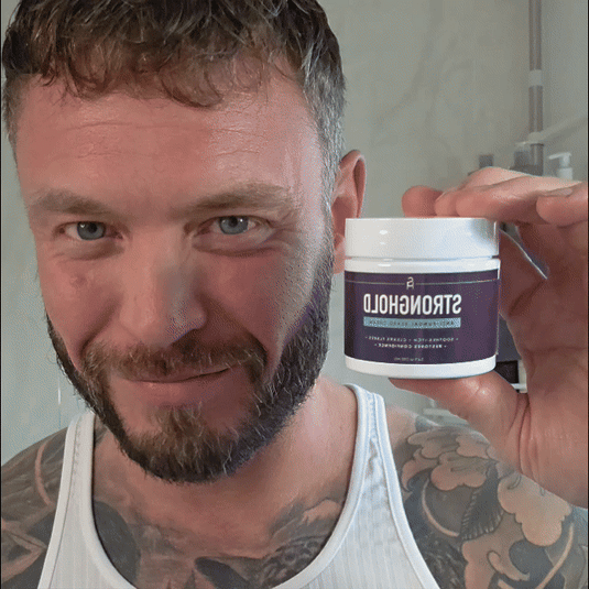 "Relief from Itchiness and Redness" "I’ve tried several products, but Strong Hold Advance is the only one that worked for my itchy, irritated skin. It calms redness and hydrates the skin underneath my beard, making it feel more comfortable throughout the day. The difference is incredible!"